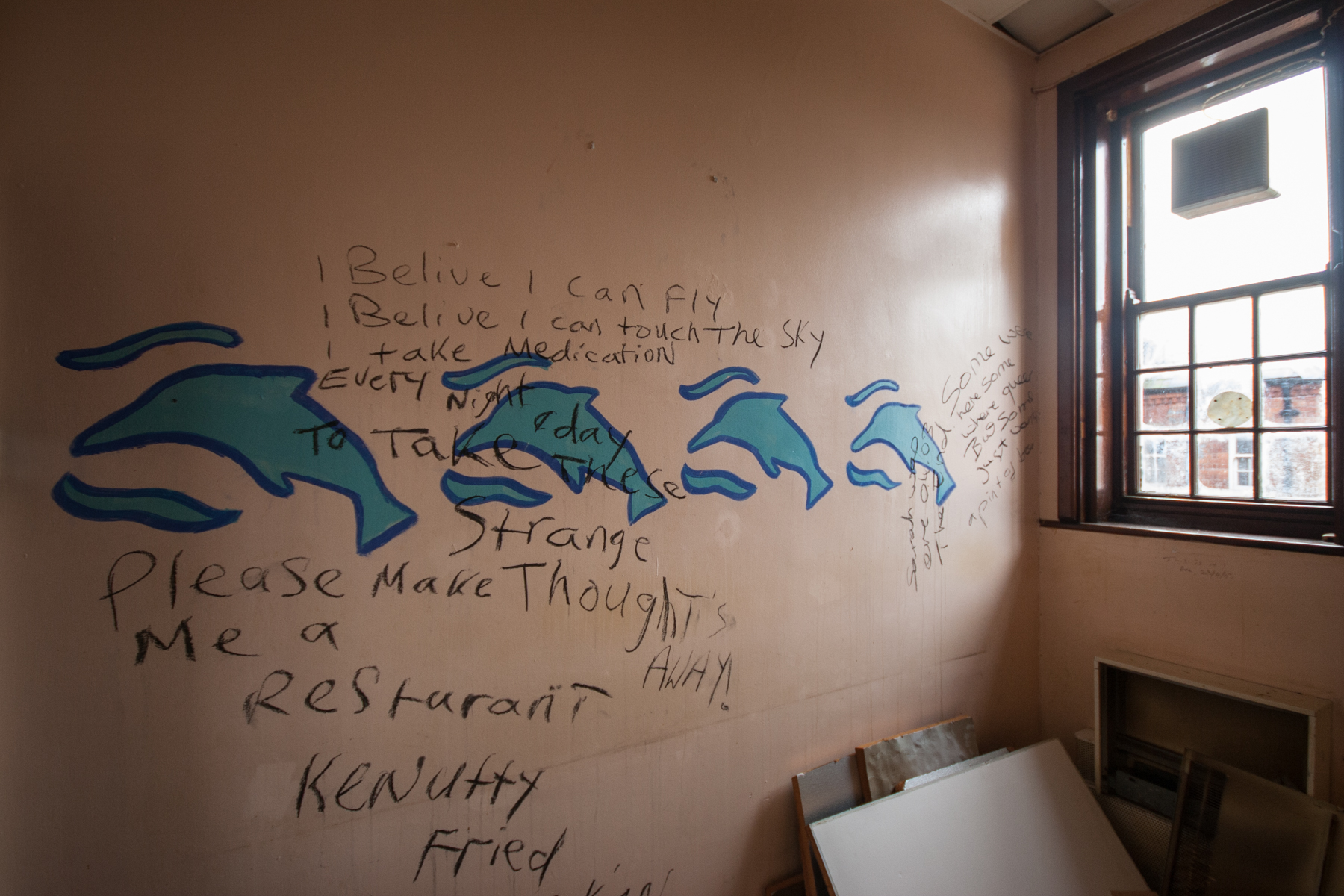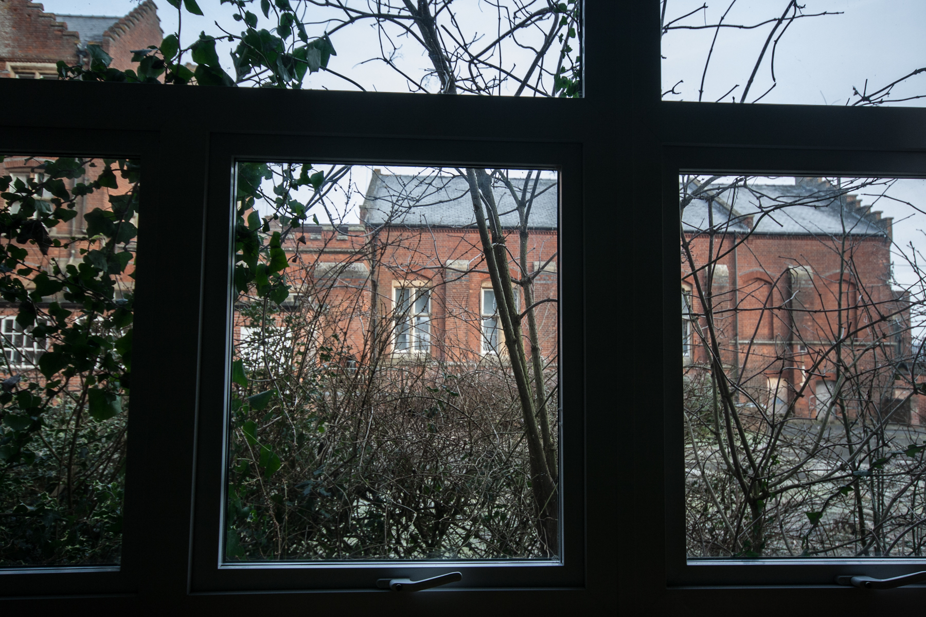 The initial development by Charles H. Howell for 285 inmates included a lodge cottage at the principal entrance onto the Reading Road, a 3 storey administration block facing west flanked by the Superintendent’s residence to the southwest and working patients block to the north east, the latter separated by a four storey water tower with access underneath to the kitchens and stores. The main patients frontage faced east with a clock tower within the three storey central section of male (north) and female (south) wards, with further two storey sections stepped back either side. A detached chapel was located to the south west and works dept., gas works, farm and pair of farm worker’s cottages to the north. A terrace of 6 cottages was also provided on Reading Road for married attendants. All buildings were built in red brick with blue brick detailing and slate roofs. Stone window mullions and crow-stepped gables featured on some of the principal buildings.
